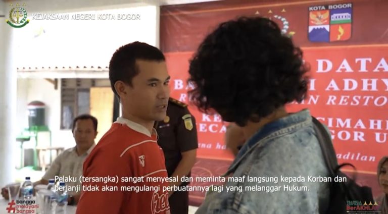 Pada hari Rabu tanggal 23 Agustus 2023 bertempat di Bale Badami Adhyaksa (Rumah Keadilan Restoratif) Kel. Cimahpar Kec. Bogor Utara, Kota Bogor, Kepala Kejaksaan Negeri Kota Bogor melalui Kepala Seksi Tindak Pidana Umum Kejari Kota Bogor dan Jaksa Penuntut Umum telah melakukan mediasi dan upaya perdamaian antara korban dan Tersangka yang disaksikan langsung oleh Penyidik Polresta Bogor Kota, Pejabat Pemerintahan setempat, tokoh agama setempat dan tokoh masyarakat.