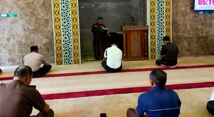 Pekanbaru – Ustadz Chairul Ichwan S.PDI Dalam Tausiyah Qobliyah Dzuhur sekitar pukul 12.30 Wib menyampaikan ke jemaah atau ke pegawai Muslim di lingkungan Kejaksaan Tinggi Riau bahwa nilai keutamaan sholat ditimbang dari kadar khusyuk pelaku sholat.