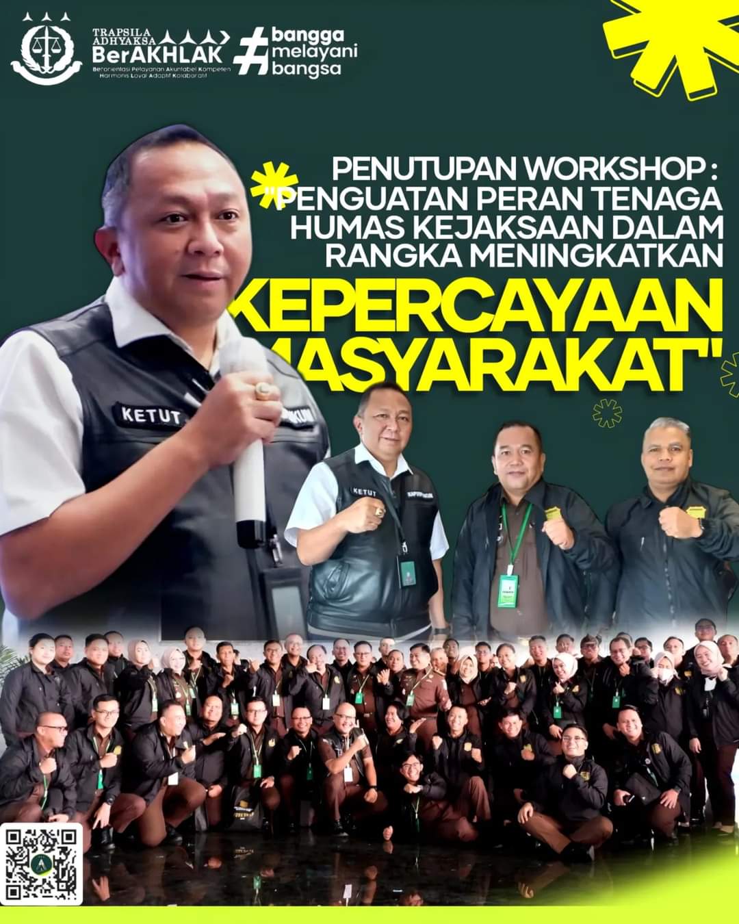 Penutupan kegiatan Workshop Penguatan Peran Tenaga Humas Kejaksaan Dalam Meningkatkan Kepercayaan Masyarakat berjalan aman, tertib, dan lancar, singkat Bambang Heripurwanto (Suhend)