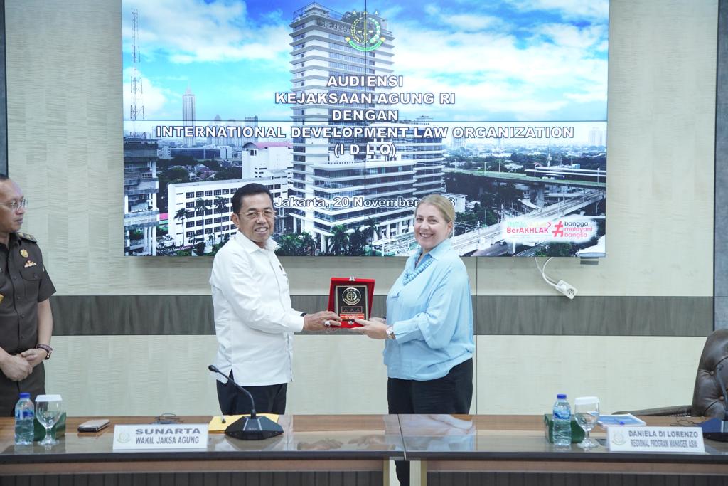 Dalam sambutannya, Wakil Jaksa Agung mengucapkan terima kasih dan apresiasi kepada IDLO atas seluruh dukungan yang telah diberikan.