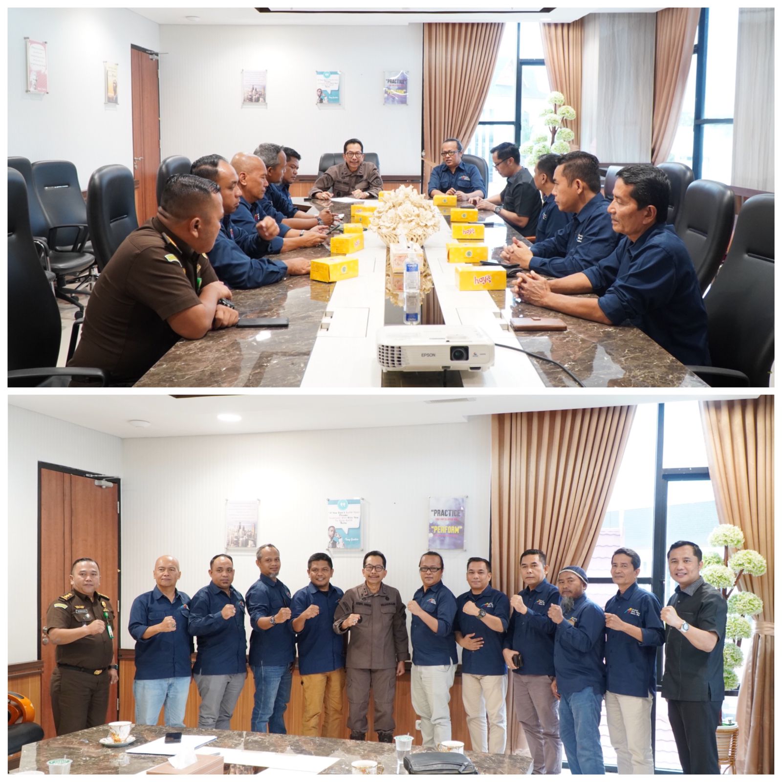 Audiensi dan Silaturahmi Pengurus Asosiasi Media Siber Indonesia Wilayah Riau tersebut berlangsung aman, tertib, dan lancar, terang Kasi Penkum Kejati Riau Bambang Heripurwanto (Suhend)