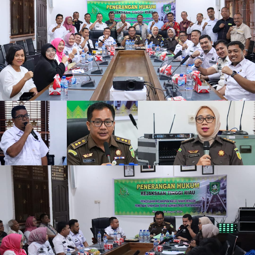 Pekanbaru –  Tim Penerangan Hukum (Penkum) Kejaksaan Tinggi Riau menggelar kegiatan Penerangan Hukum dengan tema “Pencegahan Kejahatan Mafia Tanah Dengan Pemetaan Tanah Dan Tata Tertib Administrasi Pertanahan”, Rabu (24/1/2024) sekira pukul 10.30 Wib di Ruang Rapat Camat Mandau, Kecamatan Mandau, Kabupaten Bengkalis, Provinsi Riau.
