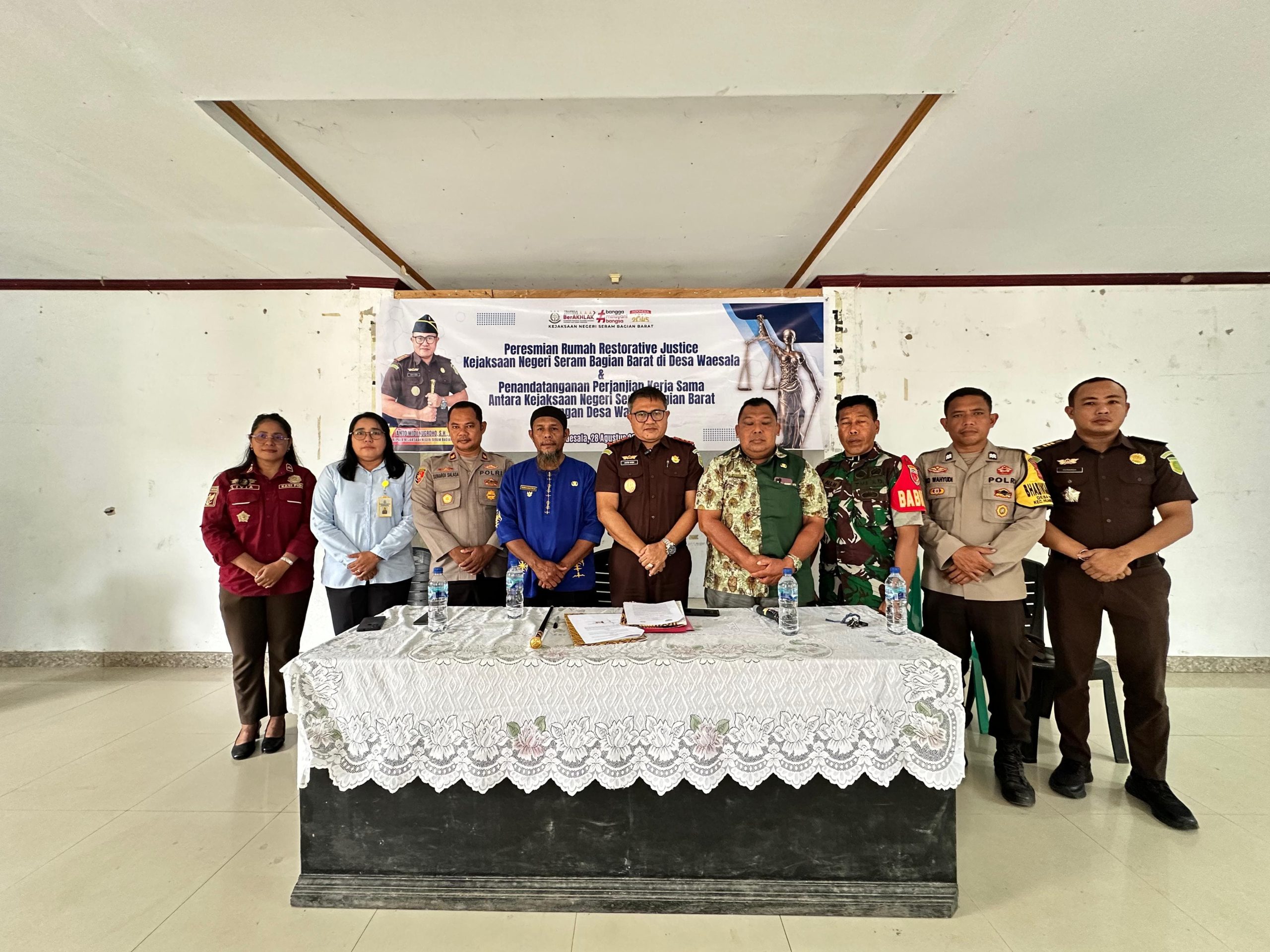 Waesala– Usai peresmian Rumah Restorative Justice, Kejaksaan Negeri Seram Bagian Barat melakukan Penandatanganan Perjanjian Kerja Sama (MoU) dengan Pemerintah Desa Waesala di Aula Kantor Desa Waesala, Kec. Huamual Belakang Kamis 28 Agustus 2025.
