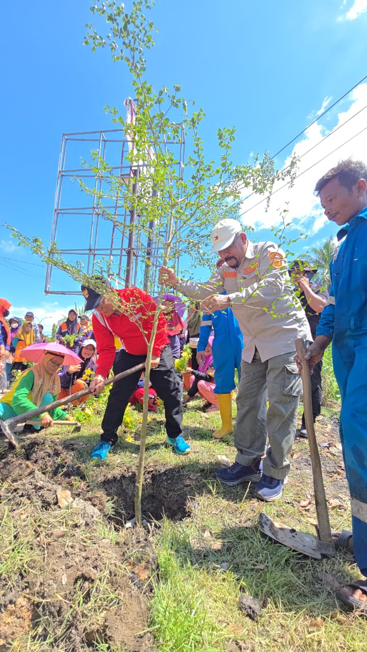 Bupati Rohil H Bistamam Dan Kepala DLH Rohil Suwandi Lakukan Goro Dan Penanaman Pohon